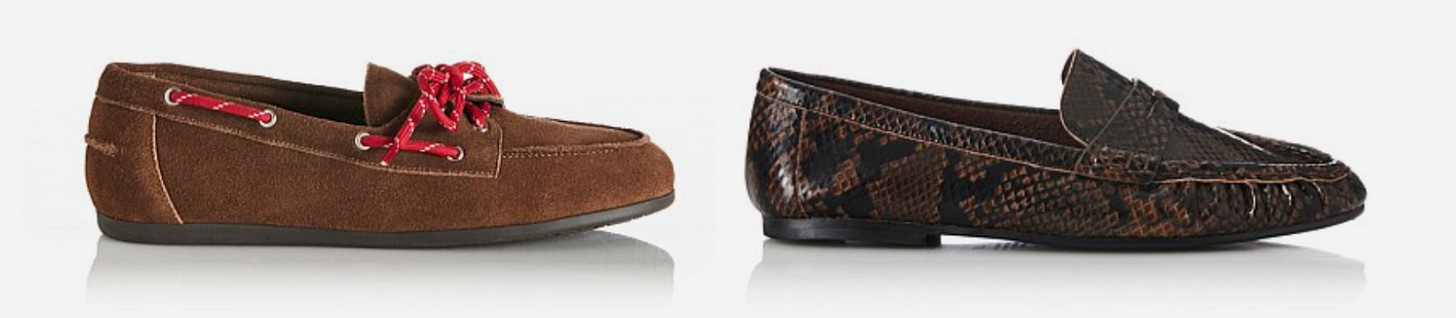 HOT TREND TIP = Go for choc suede or croc loafers… or the hottest Spring trend, boat shoes! They’re going to be everywhere. Buy now, wear now! Tap to shop »